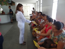 | Médica distribui panfletos para pacientes (Foto: Ascom/SMS) |