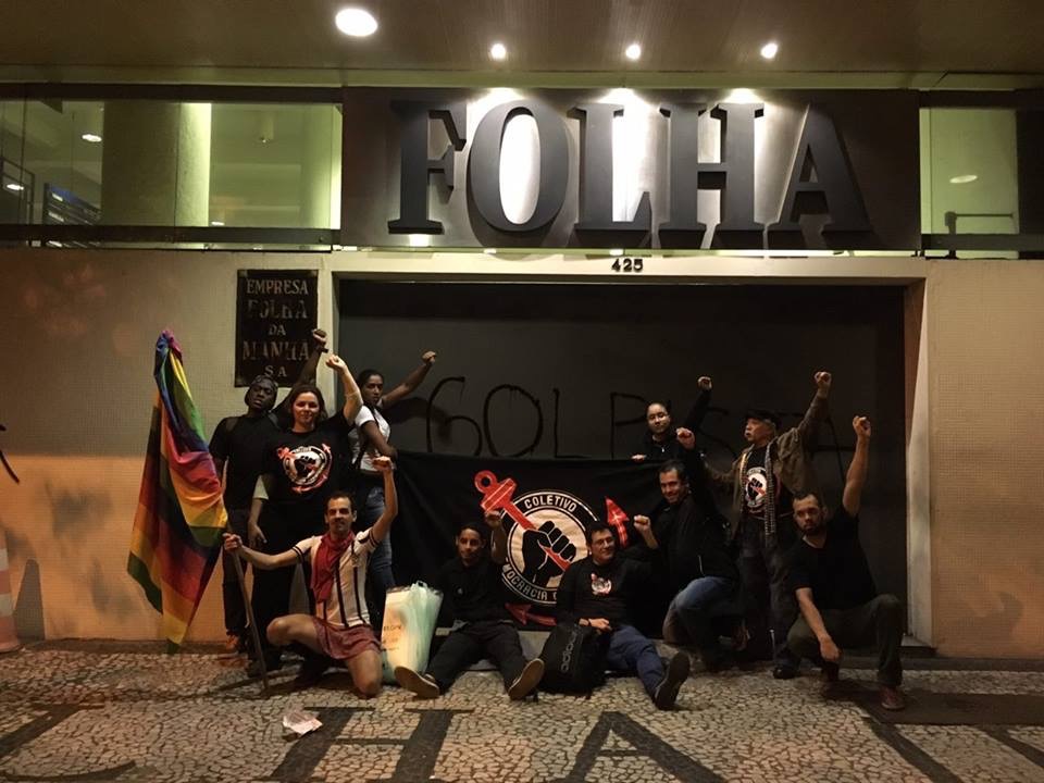 O motivo: os manifestantes elegeram a Folha como um dos alvos do esculacho. Foram até a sede do jornal na Barão de Limeira, no centro de São Paulo. Picharam “Folha Golpista”.